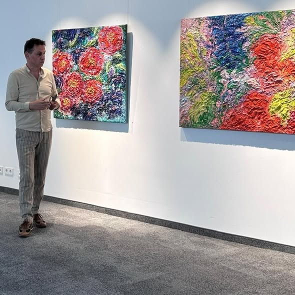 Ansgar Skiba widmet sich seit Jahrzehnten der Natur als zentrales Thema seiner Malerei. Mit leuchtender Farbenergie verwandelt er Wellen, Gebirge und Gärten in sinnliche, archetypische Bildwelten. Farbe ist sein zentrales Ausdrucksmittel – in ihrer Materialität, Tiefe und haptischen Präsenz. In der Ausstellung in der Galerie der Volksbank Kurpfalz stehen seine Blumen- und Gartenbilder im Fokus, viele entstanden im Hermannshof Weinheim.